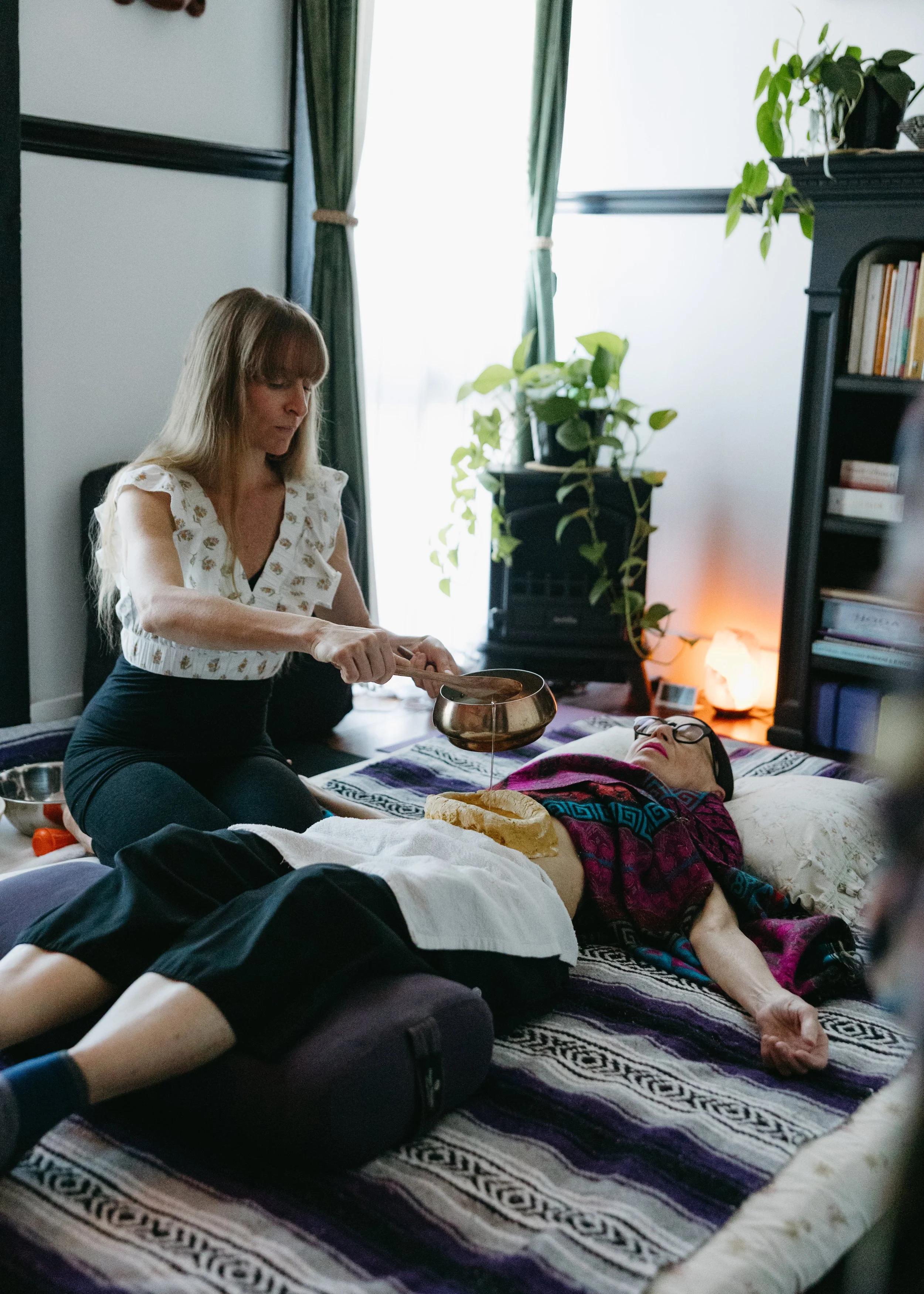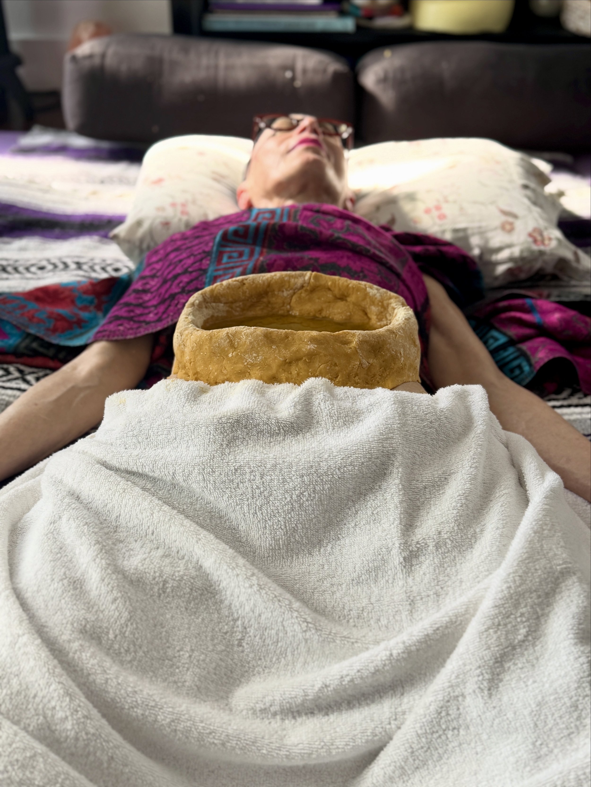 The weight and warmth of the pooled oil allow herbs to reach deeper layers of tissue that standard massage possibly cannot.